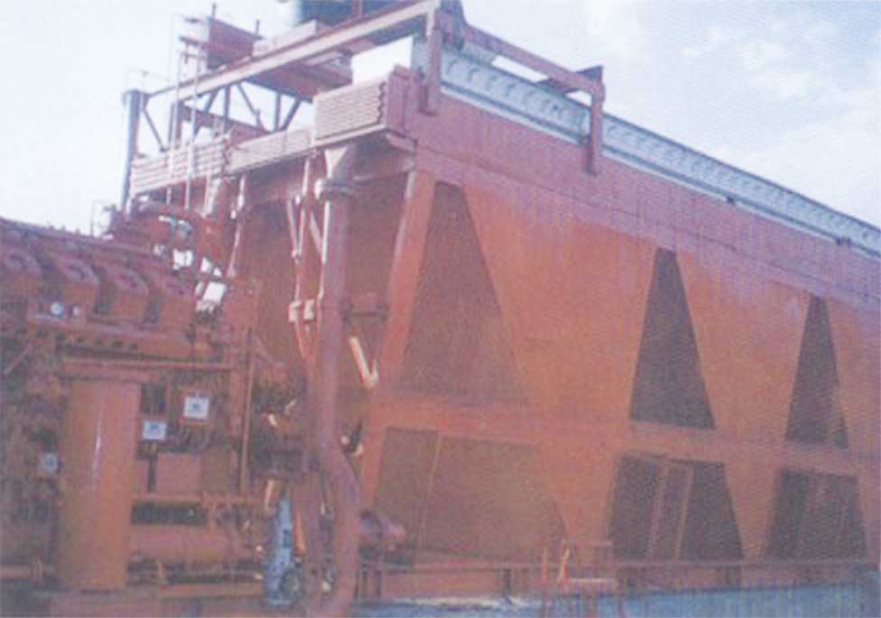熱燒結(jié)礦從燒結(jié)機(jī)尾部落下經(jīng)過(guò)單輥破碎振動(dòng)篩篩分后,落到冷卻機(jī)傳送帶上,在冷卻機(jī)上布置有數(shù)個(gè)冷卻風(fēng)罩,風(fēng)罩內(nèi)裝有軸流風(fēng)機(jī)(吸風(fēng)式),使冷卻風(fēng)通過(guò)礦料層,能過(guò)礦料層后的風(fēng)溫在第一風(fēng)罩內(nèi)一般可達(dá)250~400℃,第二風(fēng)罩內(nèi)風(fēng)溫一般為200℃左右。冷卻礦料的另一種形式是鼓風(fēng)冷卻,即風(fēng)機(jī)在礦料層底部鼓風(fēng),通過(guò)礦層后進(jìn)入風(fēng)罩排空。
